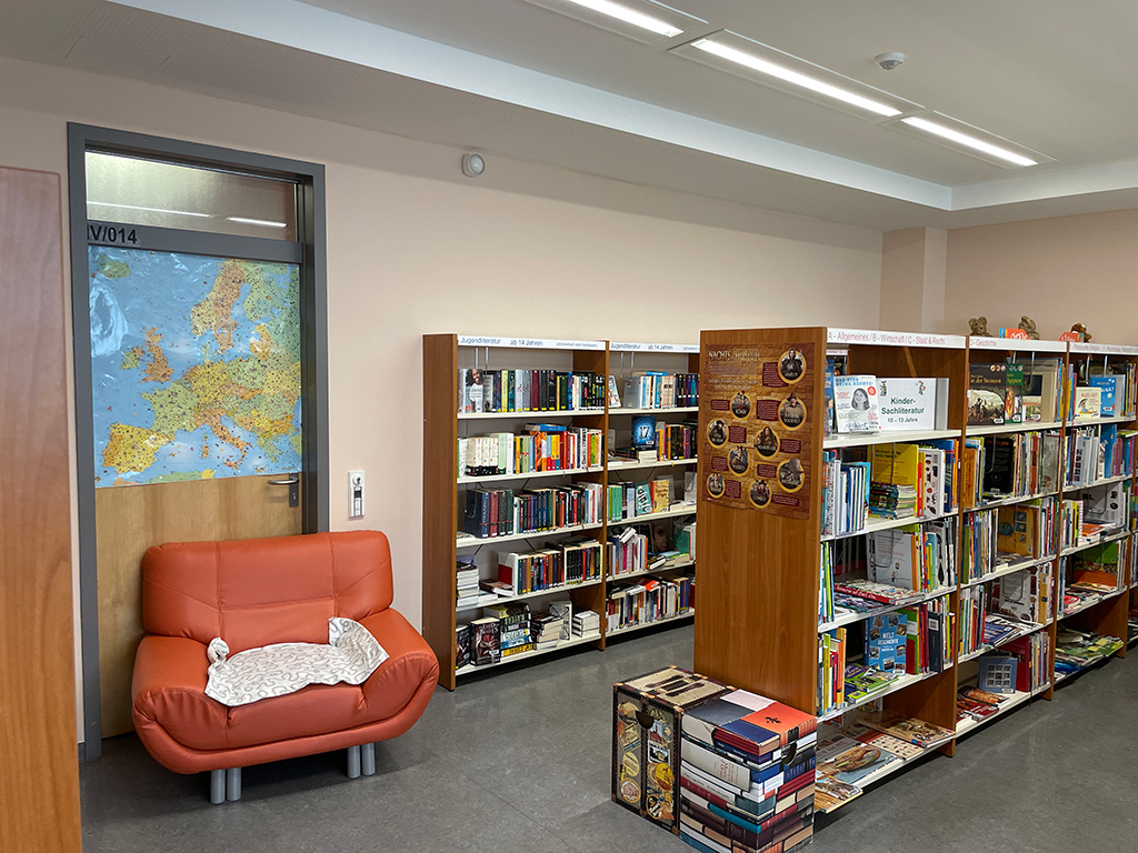 Unsere Schulbibliothek – eine Zweigstelle der „Hans-Zesewitz-Bibliothek“ – besteht seit 2007 im Gymnasium.
