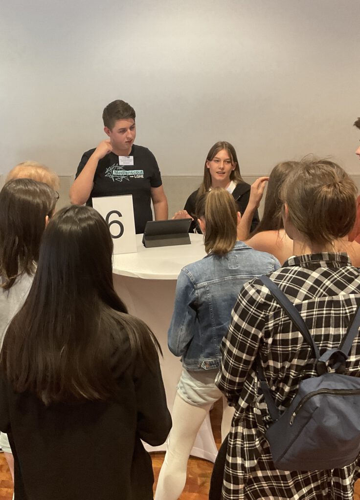 Während des gesamten Netzwerktreffens konnten die Teilnehmenden auf einem „Markt der Möglichkeiten“ zahlreiche medienpädagogische Fachkräfte kennenlernen, die die Medienscout-Ausbildung zukünftig an ihren Schulen unterstützen können.