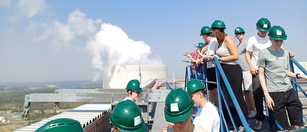 Die Führung im Kraftwerk sowie der Blick über die Landschaft vom 163 m hohen Kesselhaus ins Neuseenland von Leipzig zum benachbarten MIBRAG – Tagebau machten diese Tour zu einem interessanten Erlebnis. Das absolute Highlight war für die meisten jedoch der Gang in den Kühlturm – ein Saunaerlebnis der besonderen Art. Schmutzige Schuhe gab es dann bei der Besichtigung des Tagebaus. Nach einer kleinen Tour mit einem Mannschaftstransportwagen der MIBRAG wurde die Runde zu Fuß durch den feinen Kohlestaub fortgesetzt. An den Flözen und Deckschichten war der Bodenschatz im wahrsten Sinne des Wortes zum Greifen nah. Wer wollte, durfte sich als Andenken ein bisschen Braunkohle mit nach Hause nehmen.