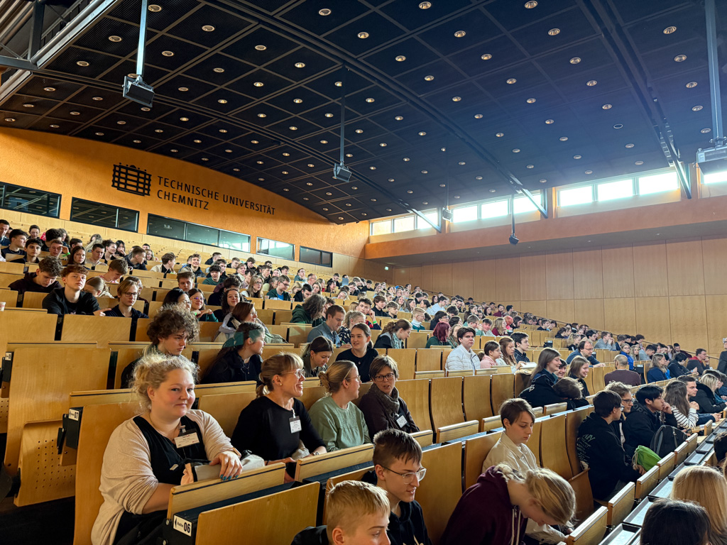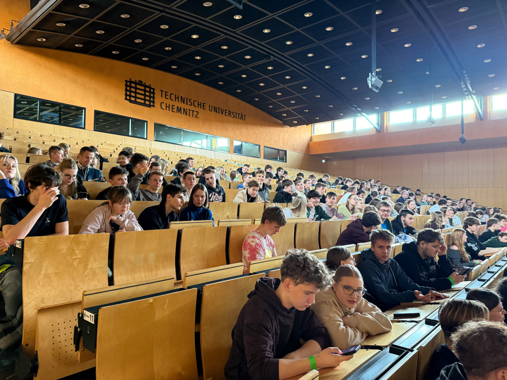 Auch die offizielle Begrüßung ließ nicht lange auf sich warten: Der sächsische Kultusminister Conrad Clemens sowie der Rektor der TU Chemnitz, Prof. Dr. Gerd Strohmeier, richteten ihre Worte an die Gäste. Clemens lobte das Engagement der Jugendlichen und hob hervor, wie dringend Sachsen MINT-Nachwuchs – insbesondere auch MINT-Lehrkräfte – benötigt. Rektor Strohmeier verwies stolz auf die hohe Attraktivität der TU Chemnitz, die 2025 vom Portal StudyCheck.de zur beliebtesten Universität Deutschlands gewählt wurde.