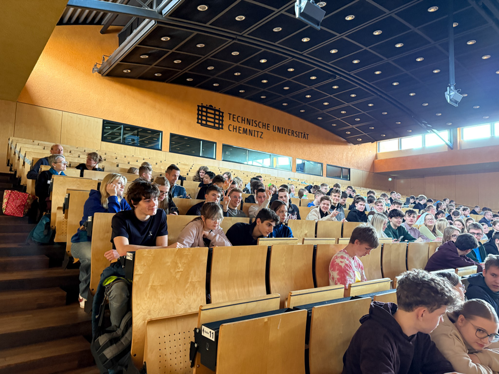 Denn in diesem Jahr wurde der Tag der Mathematik auch zu einem Ort des internationalen Austauschs: 25 Schülerinnen und Schüler aus Polen und Tschechien nahmen im Rahmen der vom DAAD geförderten „BIDS-Schnuppertage Mathematik“ teil – ein Besuch, der durch Mittel des Auswärtigen Amtes ermöglicht wurde. Ebenso wurden sieben ukrainische Jugendliche willkommen geheißen, die derzeit in Chemnitz leben. Ihre Teilnahme war ein starkes Zeichen für Offenheit, Gemeinschaft und das verbindende Potenzial von Bildung.