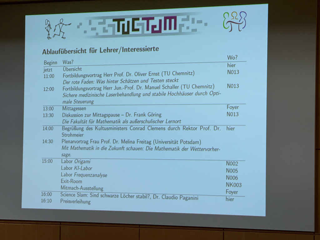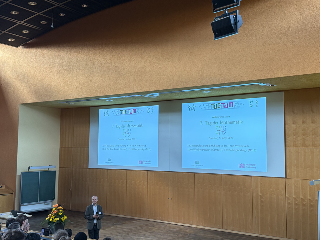Darüber hinaus stellte Dr. Frank Göring die Fakultät als außerschulischen Lernort vor. Ob als Ziel für einen Projekttag, Ort für ein Schülerpraktikum oder Gastgeber für ganze Schulklassen – die TU Chemnitz öffnet ihre Türen gern für junge Mathebegeisterte und solche, die es noch werden wollen.
