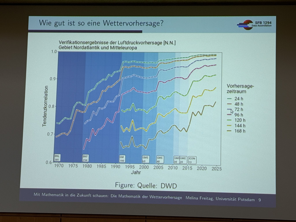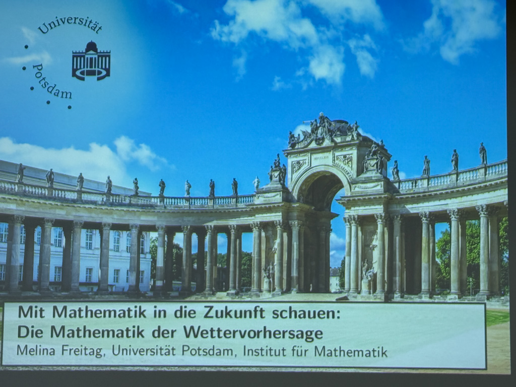 Ein echtes Highlight war der Hauptvortrag von Prof. Dr. Melina Freitag von der Universität Potsdam – selbst einst Studierende an der TU Chemnitz. Mit viel Charme und Fachwissen erklärte sie die Mathematik hinter der Wettervorhersage und entführte ihr Publikum in die Welt der Datenassimilation.