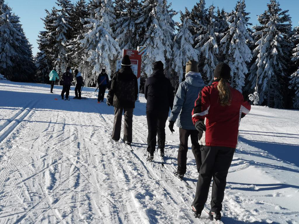Die Abfahrerinnen und Abfahrer waren am Fuße des Fichtelberges. Dabei lernten die Anfängerinnen und Anfänger die Bedingungen im Schnee kennen. In Kleingruppen und mit gebuchten Skilehrerinnen und Skilehrern wurden die ersten kurzen Abfahrten in relativ flachem Gelände gemacht. Leider hatten an diesem Tag noch keine Lifte geöffnet, sodass sich die schon aktiven Skisportlerinnen und Skisportler zunächst ebenfalls im flachen Gelände und später mit dem Schlitten vergnügen mussten. Die Rückreise nach Neudorf traten dann alle mit der Fichtelbergbahn an.