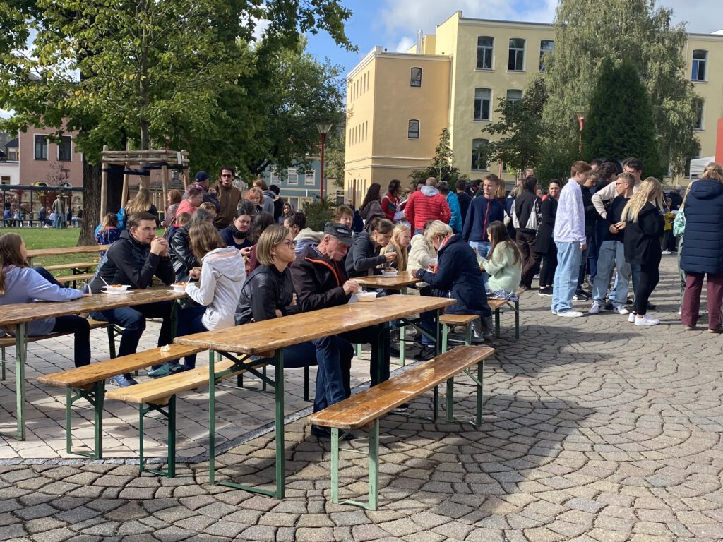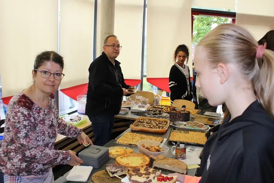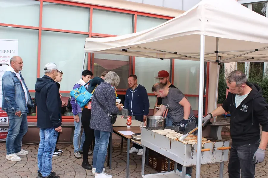 Besonders bedanken möchten wir uns bei den Eltern, die leckeren Kuchen und liebevoll belegte Brötchen gesponsert sowie verkauft haben. Dazu gab es frisch gebrühten Kaffee in unserer Cafeteria. Auch am Grill und Getränkewagen wurde fleißig gearbeitet, so dass niemand hungrig oder durstig blieb. Der Erlös kommt dem Förderverein unseres Gymnasiums zugute. Das großartige Engagement trug ebenfalls zum Erfolg dieses Tages bei. Vielen Dank.